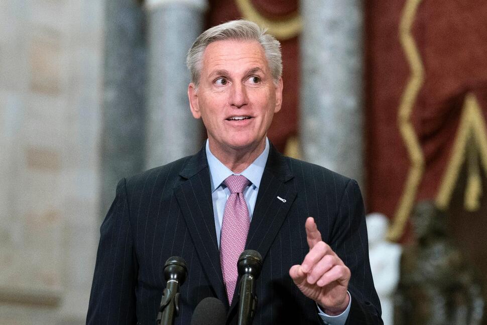 Standing in gilded Statuary Hall rather than the Capitol’s usual press briefing studio in the basement, McCarthy compared his new Republican majority to the early American lawmakers. They convened in this room when the Congress was relocated from Philadelphia.