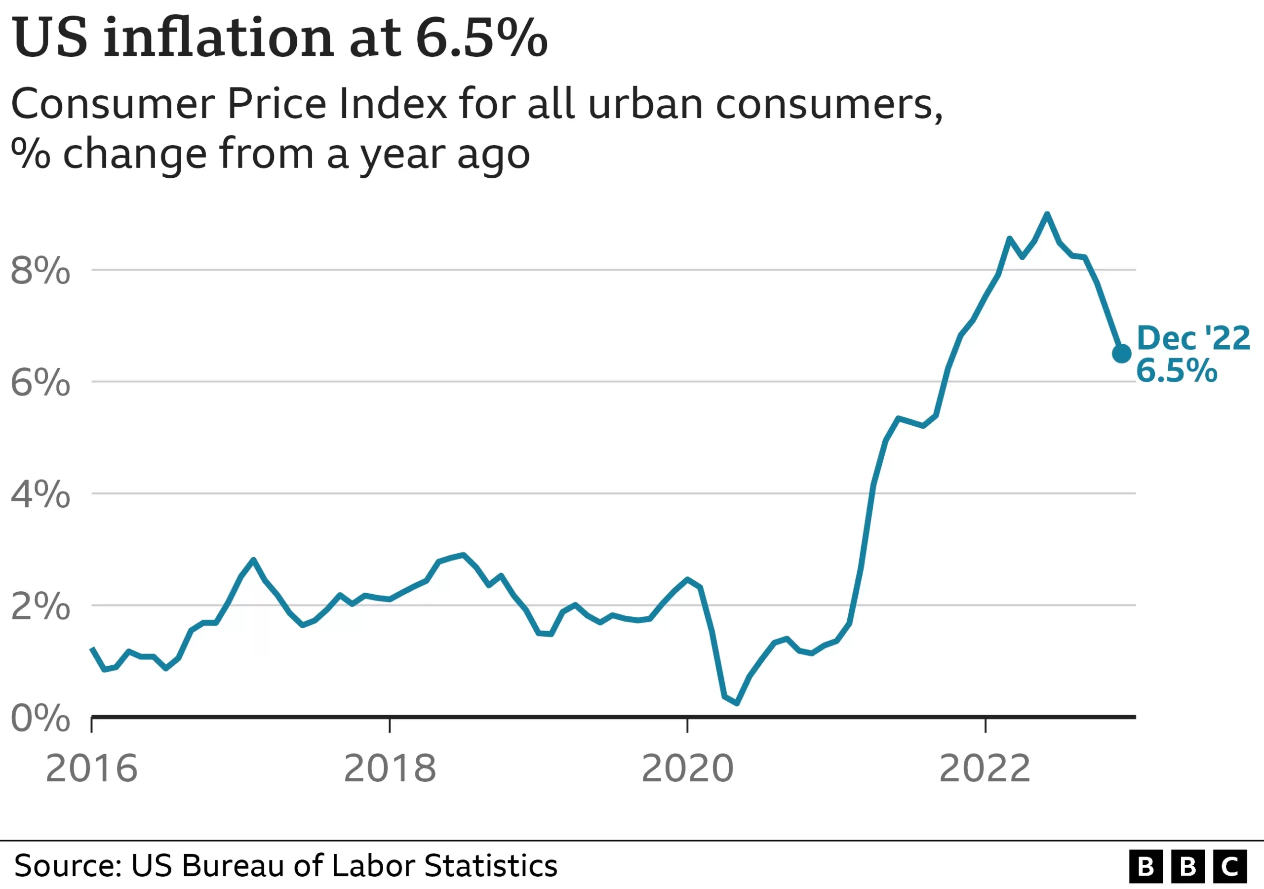 The latest report from the US showed annual inflation, the pace at which prices rise, was 6.5% in December. That was the smallest increase in more than a year, marking the sixth month in a row of the rate falling.
