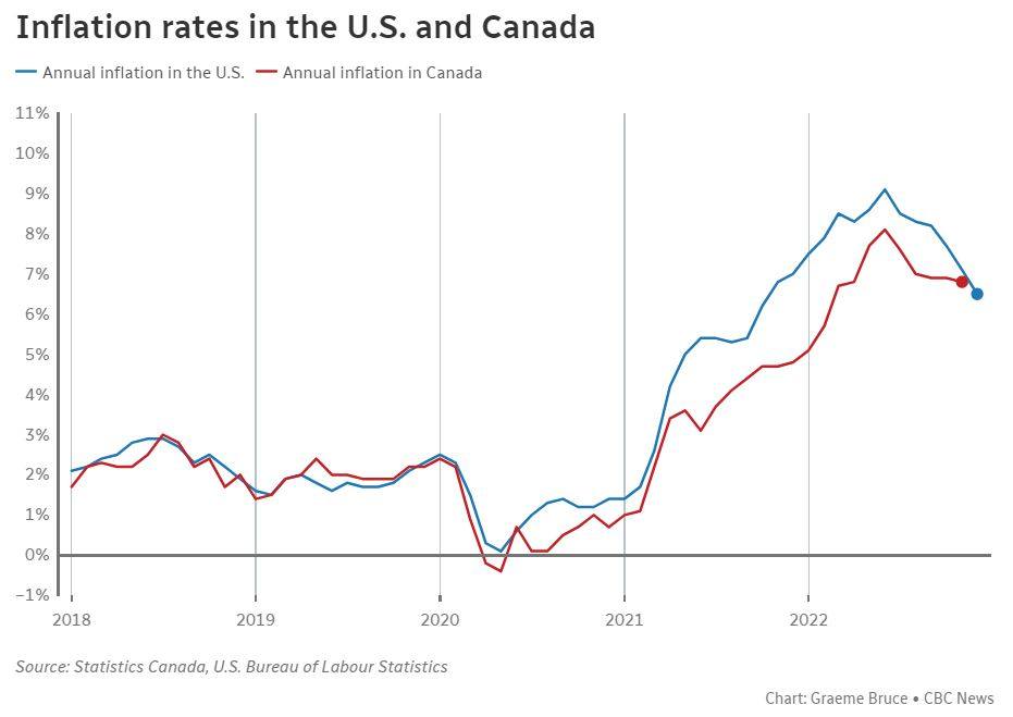 The inflation rate in the U.S. decelerated to 6.5 per cent in December, mostly due to much cheaper gasoline.