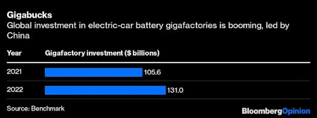 Another is wasting money. In the current environment, there is plenty of demand for raw materials or components that are produced locally because they’re easier to transport and carry no geopolitical risk. But there is a point where shortages might turn into gluts, as seen in the chip industry in the past. Even in the gleaming world of Tesla Inc.-style gigafactories, which have attracted $300 billion in investment worldwide since 2019 with China in the lead, there are likely to be flops, such as the “Britishvolt” battery factory that came close to collapse last year.